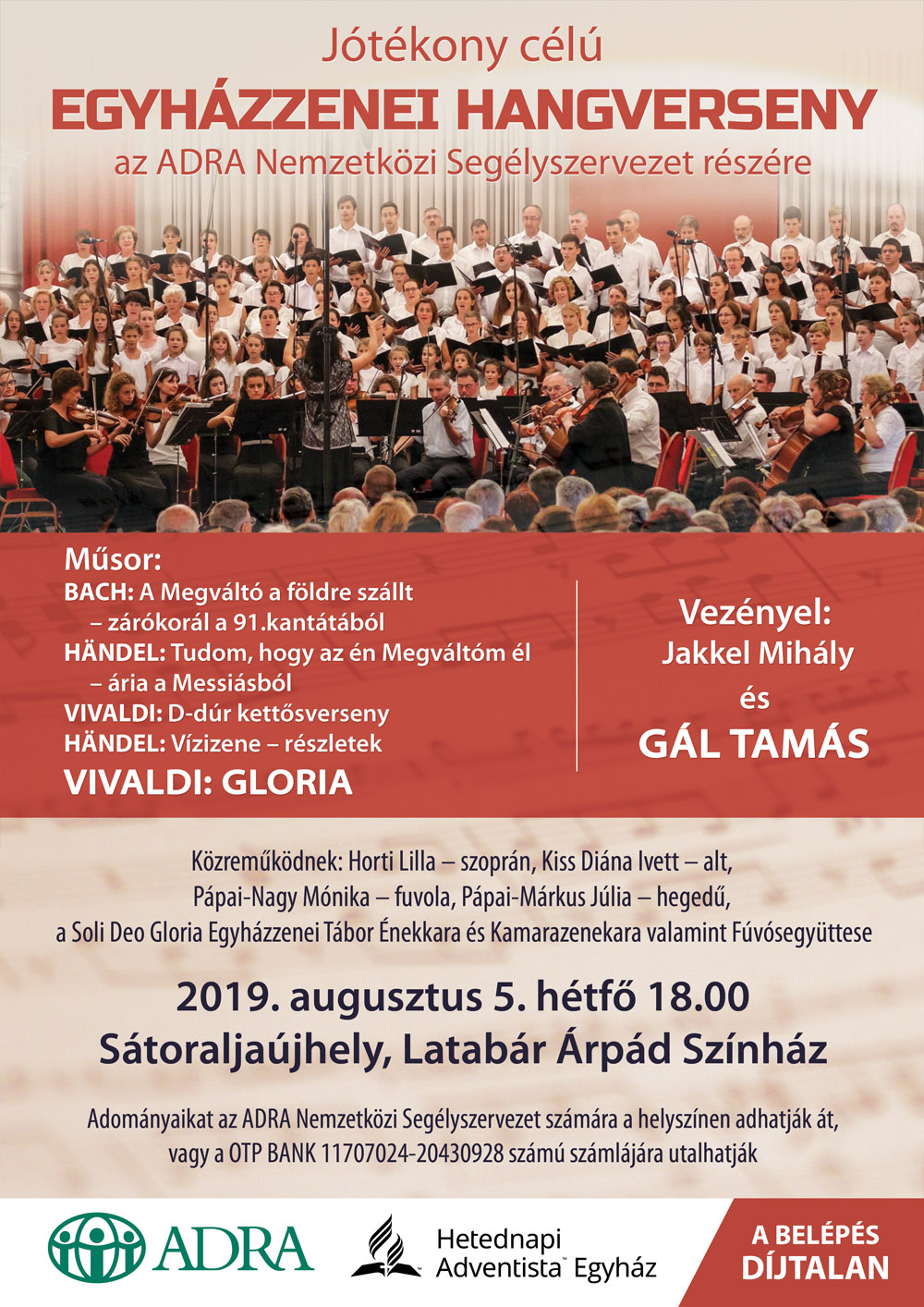 Jótékony célú EGYHÁZZENEI HANGVERSENY az ADRA Nemzetközi Segélyszervezet részére